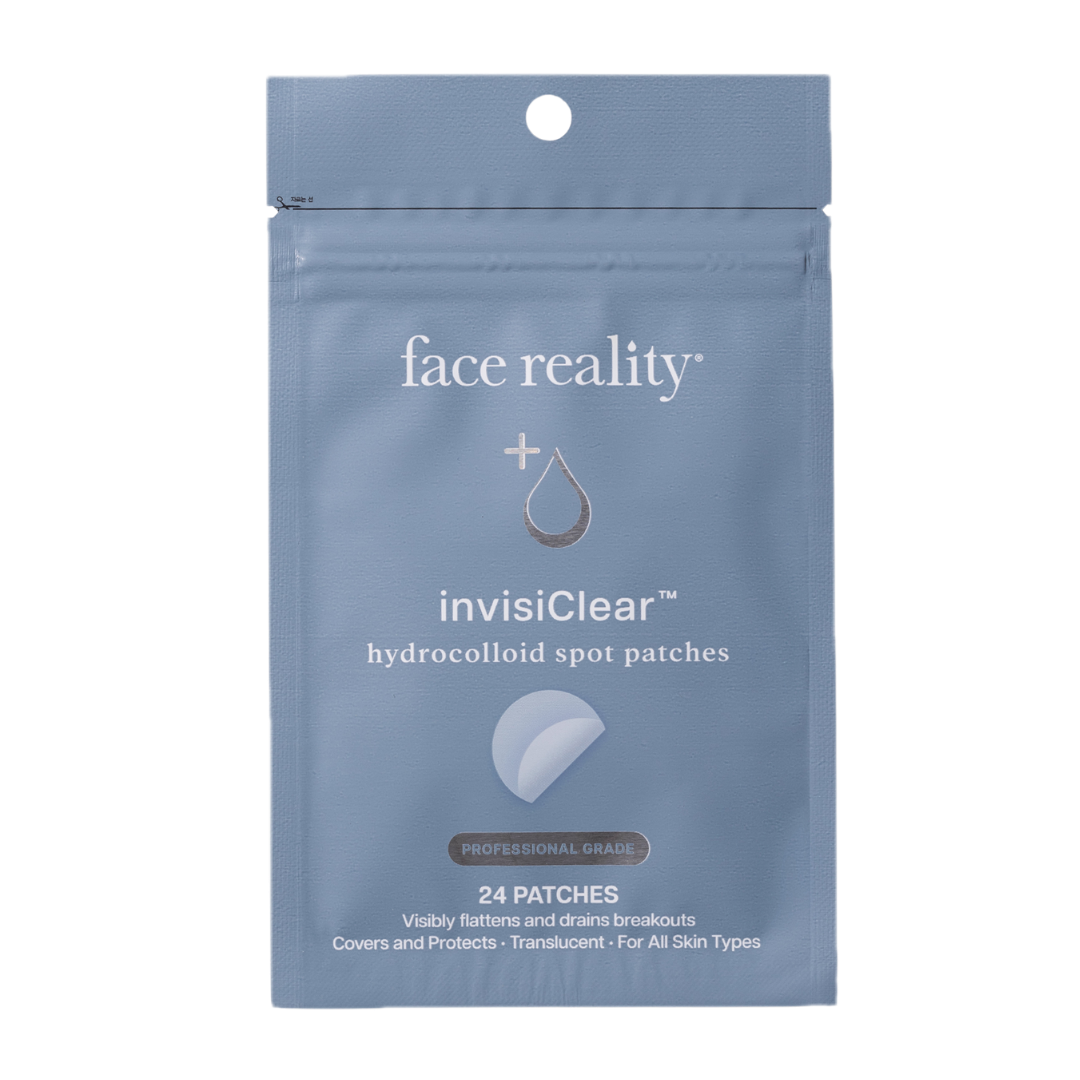 Introducing invisiClear™ hydrocolloid spot patches designed to support the skin clearing journey. Our professional- grade patches act as a transparent aid that drains, absorbs and flattens pustules and papules. InvisiClear™ prevents picking and protects skin from external aggressors and debris. We are here to get you through the rough patches.
